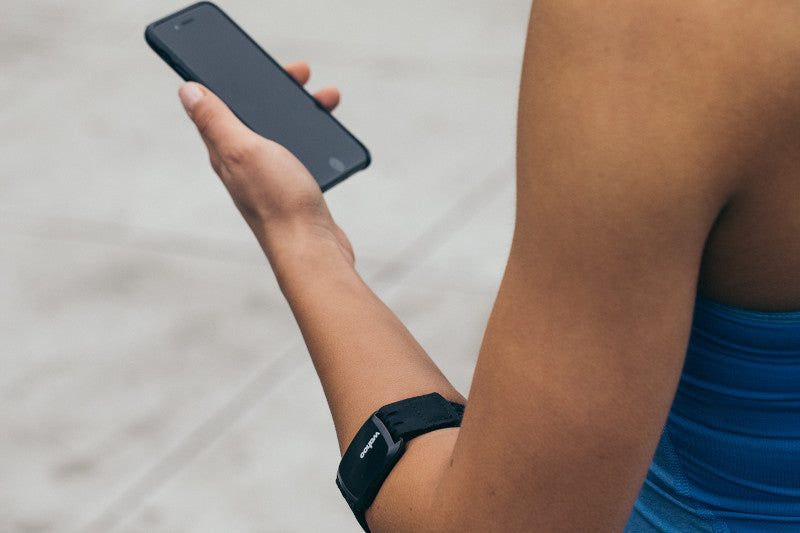 Laget av avanserte ytelsesmaterialer, er TICKR FITs bånd designet for å passe komfortabelt rundt armen din, men samtidig passe sikkert under intens aktivitet.